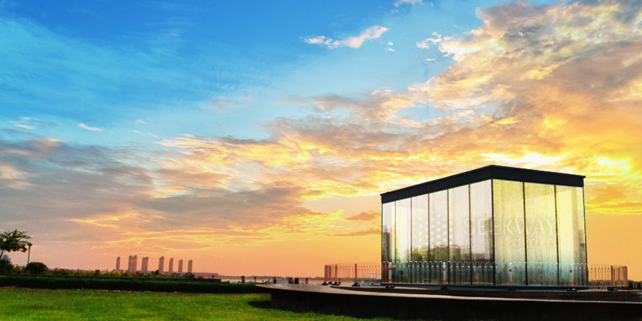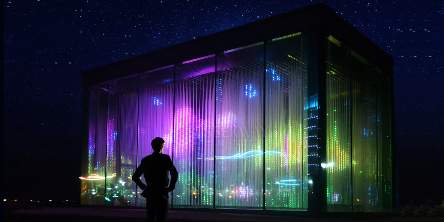 · 青岛市唐岛湾滨海公园的海岸边上,矗立着一幢12米长、6米深、6米高的巨大的玻璃外罩的LED三维显示阵列装置,这就是彩立方科技与客户团队用了洪荒之力打造的项目——唐岛湾光立方。光立方是采用细管状模块阵列,总显示像素达54x22x60=71280点,其像素及体积均已超越世界上现有的LED户外细管状阵列式三维显示项目。在2016年青岛啤酒节上,这个装置同步亮相,为盛大的啤酒节助阵。今后也会继续矗立在唐岛湾滨海边,为美丽的“海上西湖”增添色彩。