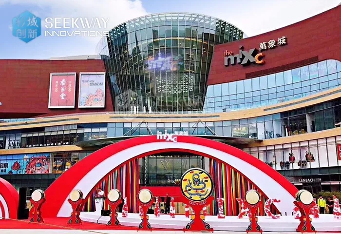 伴随盛大的开幕仪式,梦幻三维光影秀也在商场半空如期盛放, 每周七天各有特色主题动画 ,同时还能以 手机互动 ,将自然元素转化作三维光影,实时送进“山体”之中。