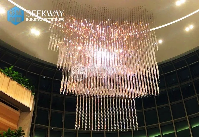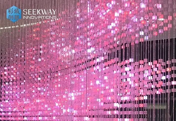 此外,每个像素点外均装有强化光效的 水晶外壳 ,工程师花费近一周时间,手动调试每个外壳角度,只为使 14977个光点 所面对的方向完全一致,达到 的现场观感。